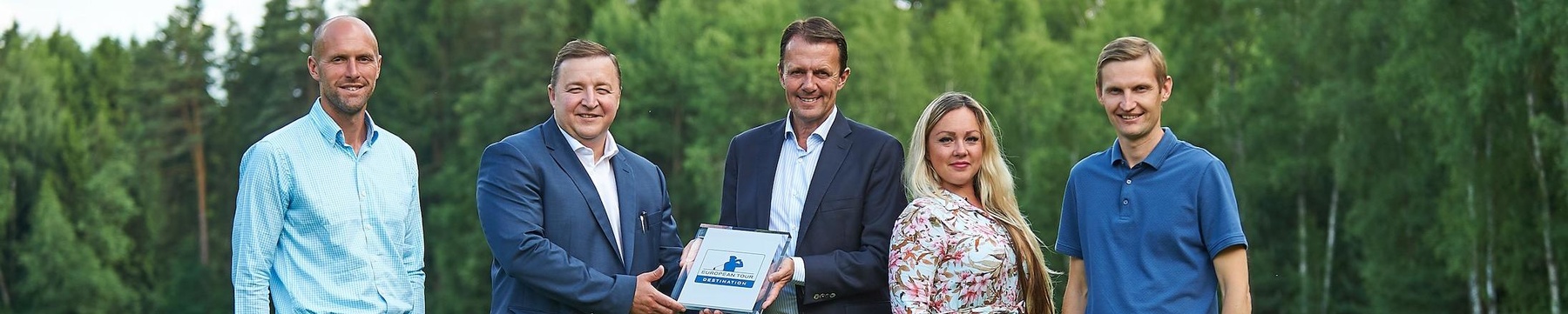 Pictured above: Head of European Tour Properties, David MacLaren, welcomes representatives of Moscow Country Club to the network of world class venues. From left: Scott McLean, European Tour Greenkeeping Consultant, Andrei Dukhovny, Director of Moscow Country Club, David MacLaren, Head of European Tour Properties, Mary Bazhenova, Golf Membership Manager of Moscow Country Club and Konstantin Gribkov, Golf Director of Moscow Country Club