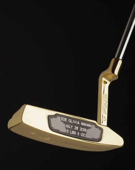 PING’s long-held gold-plated-putter tradition experienced a first this week when Hunter Mahan was presented a gold-plated Scottsdale® TR™ Anser2 inscribed with his daughter’s name, birth date and vital statistics.