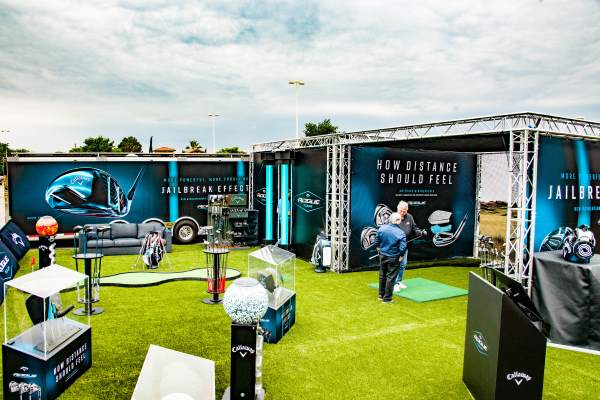The Rogue Tour activities include reception and entrance areas, flanked by Callaway’s iconic Jailbreak bars, that take customers through to a hitting bay with golf simulator where they can try out the latest Rogue products and get custom fit for any Callaway products. For those who want to see behind the tech, PVE has constructed a 3D science area with ‘exploded’ versions of Callaway clubs and balls. And finally, the short game isn’t neglected, as the latest Odyssey putters are available for test on the putting green.