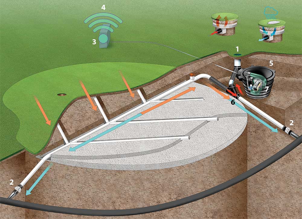 Soil Scout’s sensor transmits moisture, temperature, and salinity data in real-time from up to two metres below the surface, while SubAir’s subsurface aeration and moisture removal units guarantee ideal pitch conditions, automatically adjusting the moisture levels of the turf according to live, real-time soil conditions. In a sudden downpour, the vacuum systems activate to eliminate excess moisture in the soil profile, with 36x faster drainage than natural drainage alone.