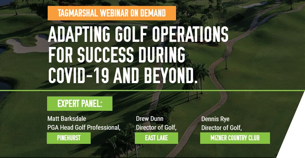 “Adapting Golf Operations for Success During COVID-19 and Beyond,” was led by an expert panel of three distinguished PGA professionals including Matt Barksdale, PGA, Head Professional at Pinehurst Resort, Drew Dunn, Director of Golf, East Lake Golf Club, and Dennis Rye, Director of Golf, Mizner Country Club and moderated by Tagmarshal’s CEO, Bodo Sieber, a data and optimization expert. The webinar recording is now available to share with the golf community on tagmarshal.com