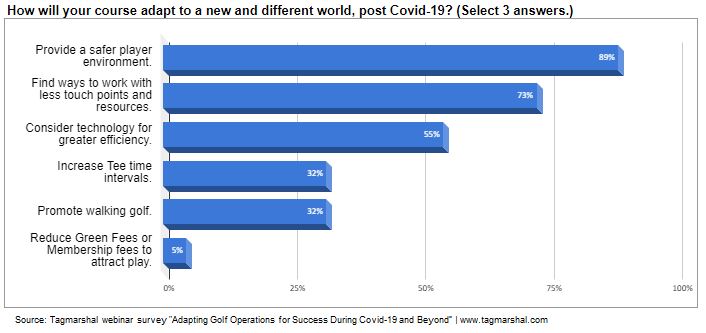 Another key survey named “How your course will adapt to a new and different world, post COVID-19” found that the top three priorities were providing a safer environment for players (89%), followed by finding ways to work with less touch points and resources (73%). Over 55 percent acknowledged the importance of technology at their courses and will consider using technology formats to achieve greater efficiencies at their facility in the future.