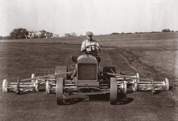 The Toro Company has reached the 100-year mark in serving the golf industry. In 1919, Toro developed the industry’s first motorized fairway mower, the Toro Standard Golf Machine, for The Minikahda Club, in Minneapolis, Minnesota. By mounting five individual reel mowers onto the front of a farm tractor, Toro helped courses increase productivity by replacing the labor and time intensive use of
