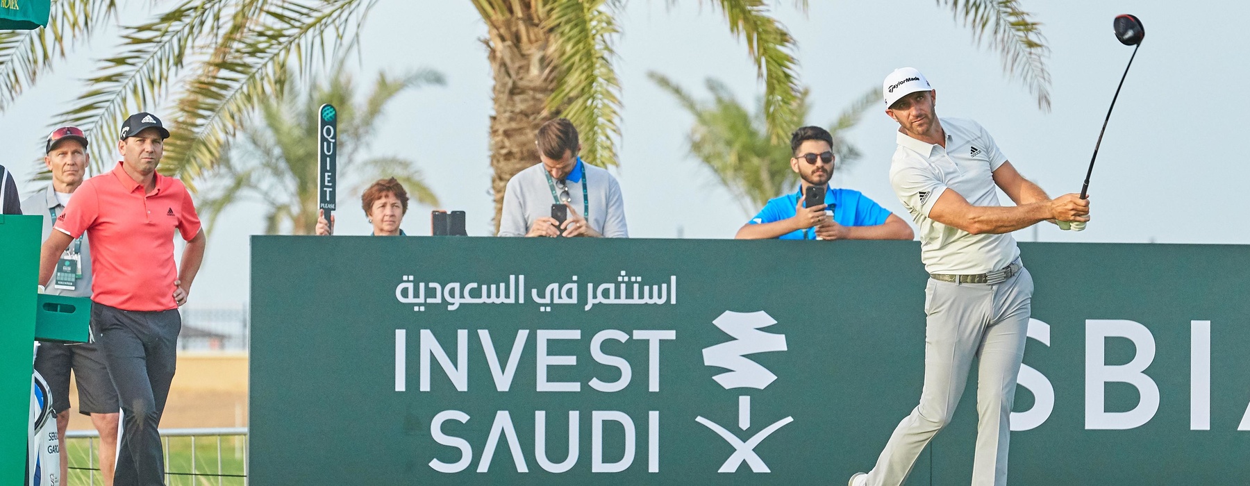 Pictured top: Dustin Johnson Tees off at The Saudi International Powered By SBIA