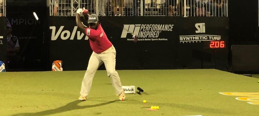 Pictured top: Maurice Allen striking the yellow version of the ball 393 yards to claim the World Long Drive Championship title.