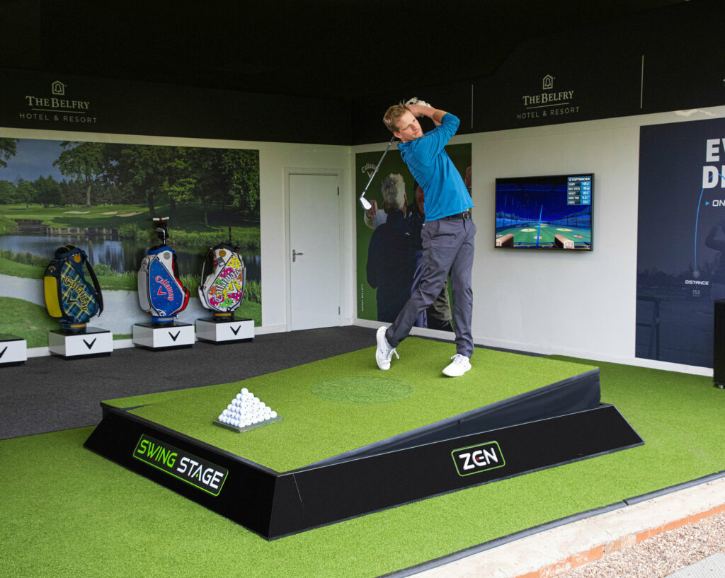 Excluding delivery and installation, the Zen Swing Stage for hitting shots from sloping lies starts at £14,950 + VAT. The adjustable Zen Green Stage, which adds Tour-quality breaking putts as well as gradients for hitting full shots, starts at £23,795 + VAT.