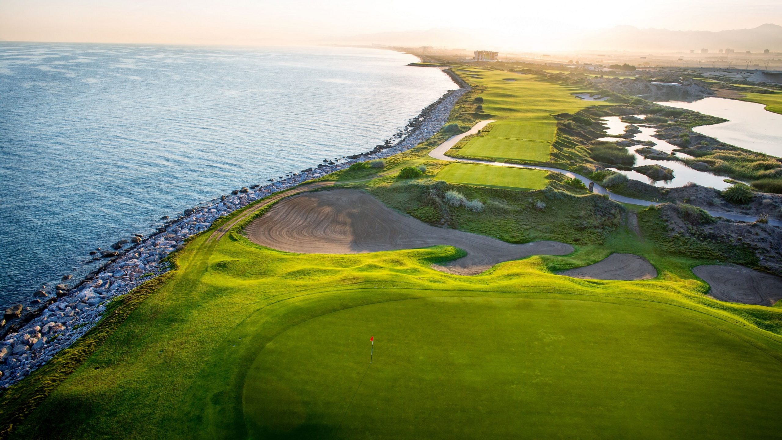 The Greg Norman-designed course is nestled along a 2km stretch of the Indian Ocean in the Sultanate of Oman, with the Hajjar mountains standing tall over the lush green grass, bunkers, natural dunes and water hazards found at Al Mouj Golf. Winners of the 2019 IAGTO sustainability award for community value, Al Mouj offers a unique biodiversity with the 173 different bird species being an integral part of this.