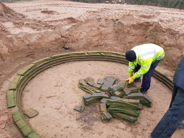 Huw Morgan MG and Llewelyn Matthews, respectively technical manager and construction manager with synthetic revet specialist Ecobunker, went to Tain at the invitation of course manager Iain MacLeod to install the companyʼs product in a new practice bunker, and MacLeod took the opportunity of inviting representative of other local clubs to attend and view the process. Attendees included Chris Haspell, representing the planned Coul Links at Embo, Eoin Riddell of Royal Dornoch, Caroline Munro of Bonar Bridge—Ardgay and Gary Urquhart of Invergordon.