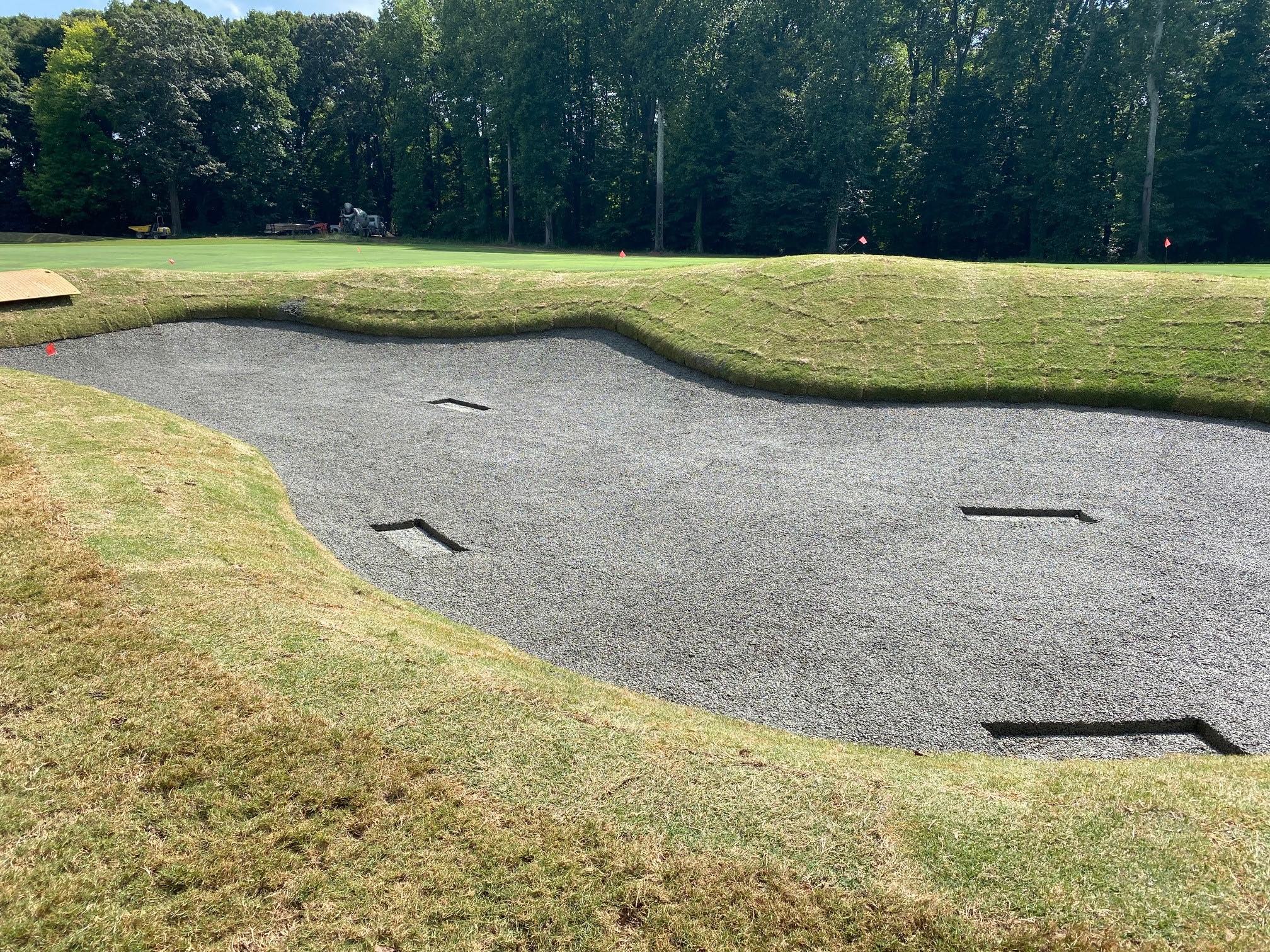 Wharton chose to use the Capillary Bunkers liner system to seal off the clay. He made contact with the company’s regional distributor, Ewing Irrigation, and with local contractor Golf Course Services of North Carolina, whose owner, JD Downey, had been an associate of architect Spence during the 2008 restoration.