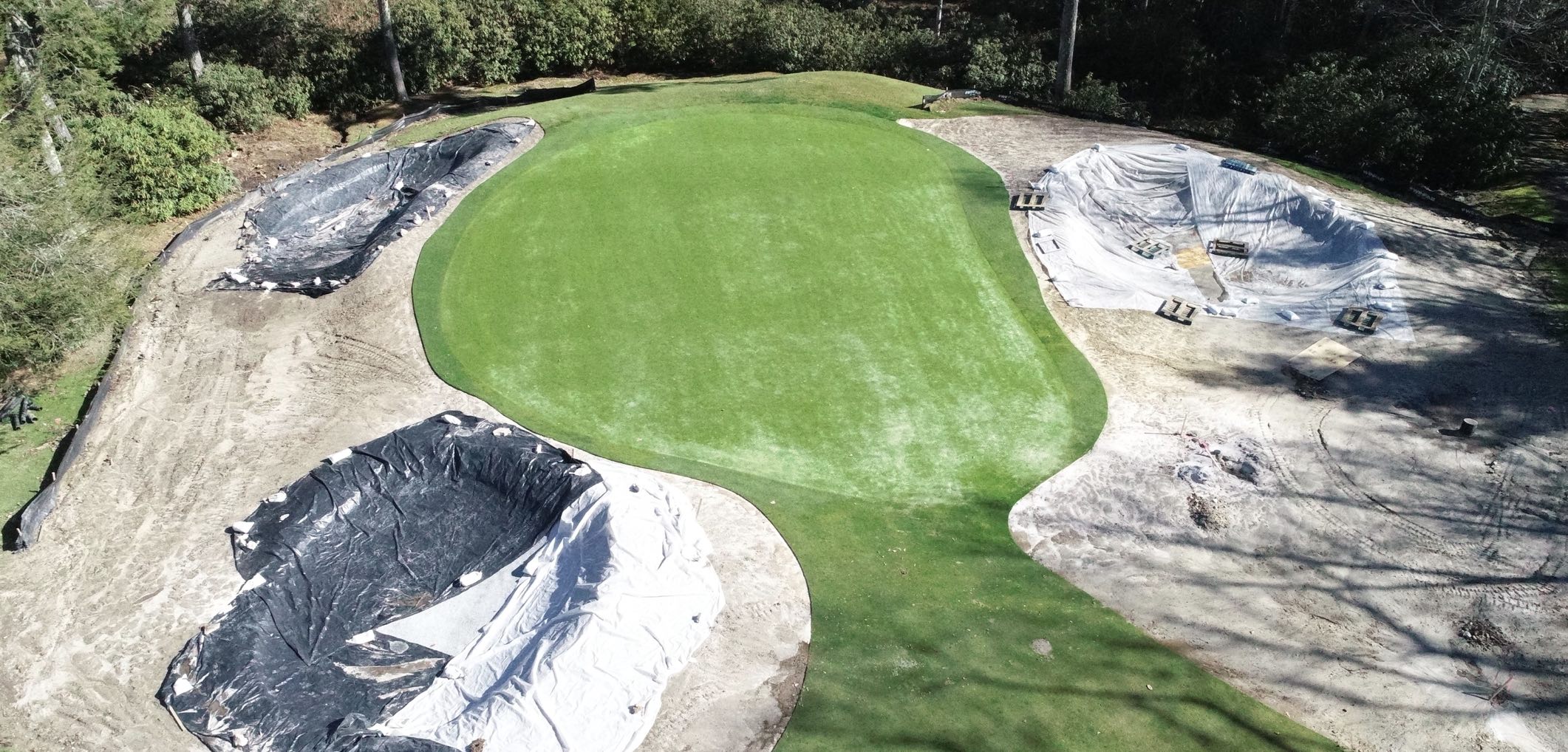 The club hired Atlanta-based golf architect Bill Bergin to oversee the work, and chose to line the bunkers using the Capillary Bunkers technology supplied by CapillaryFlow. “A couple of courses in our area had used the Capillary technology, and I got some really great feedback on it from the superintendents,” says Nelson. “Also, I felt that, given the climate uncertainties up here, the ease of installation would be very helpful – our window of opportunity to get it down was going to be better. Bill has done a lot of work in the area, and he has a really good vision to make the course more playable for higher handicaps while increasingly the challenge for the better players.