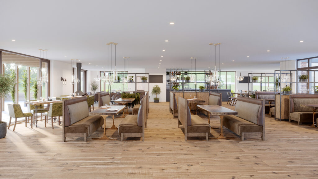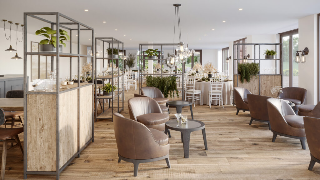 Events are at the forefront of the new design. There will be a fully customisable space capable of hosting up to 200 guests for weddings, parties and corporate events. The build also includes a new separate entrance for functions, with full bi-fold doors allowing for indoor/outdoor access with views of the lakes.