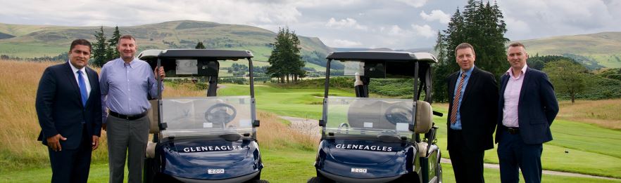 Main picture caption: from left Andre Andrade, TSV Director of Sales; Gary Silcock, Gleneagles Director of Golf; Wilson Morrison, Fairways Sales Manager; Morgan O’Sullivan, E-Z-GO Regional Sales Manager.