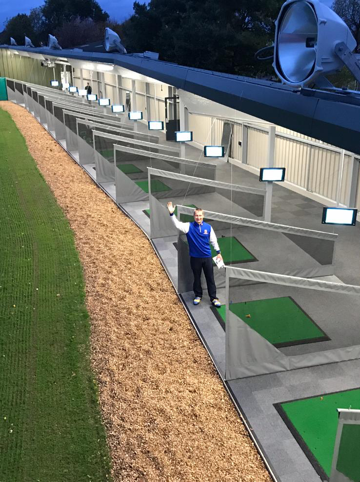 Over the last few months he has built a 16-bay floodlit driving range at Leicester Racecourse. Each bay is connected to a Toptracer touchscreen ballfight monitor and is designed to appeal to experienced golfers and beginners alike.