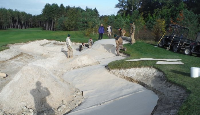 The Manor House is introducing BunkerMat technology on the majority of its 80 bunkers to improve sand retention on the steep slopes. The open structure of the BunkerMat fibres allows the sand to be held, and the technique has been introduced on several championship courses worldwide.