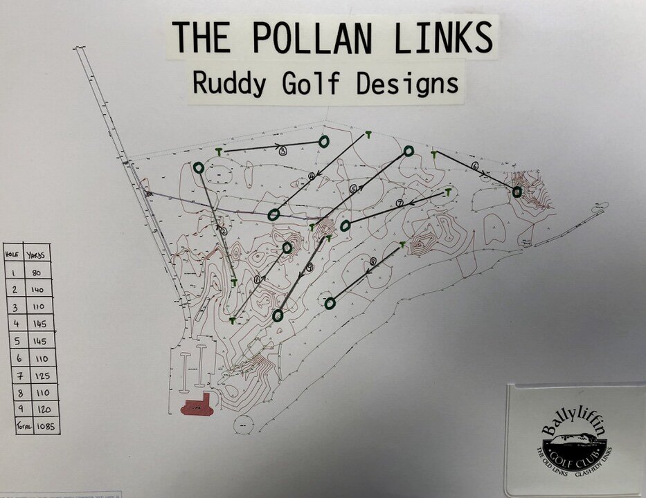 Situated on the former site of the seventh and eighth holes on the Old Course, construction of the 1,085-yard Pollan Links course, whose holes range between 90 and 146 yards, began last autumn and was completed four months ago. Work was carried out by the club’s greenkeeping team under the supervision of Ruddy and Patsy Doherty, Ballyliffin’s greens convenor.