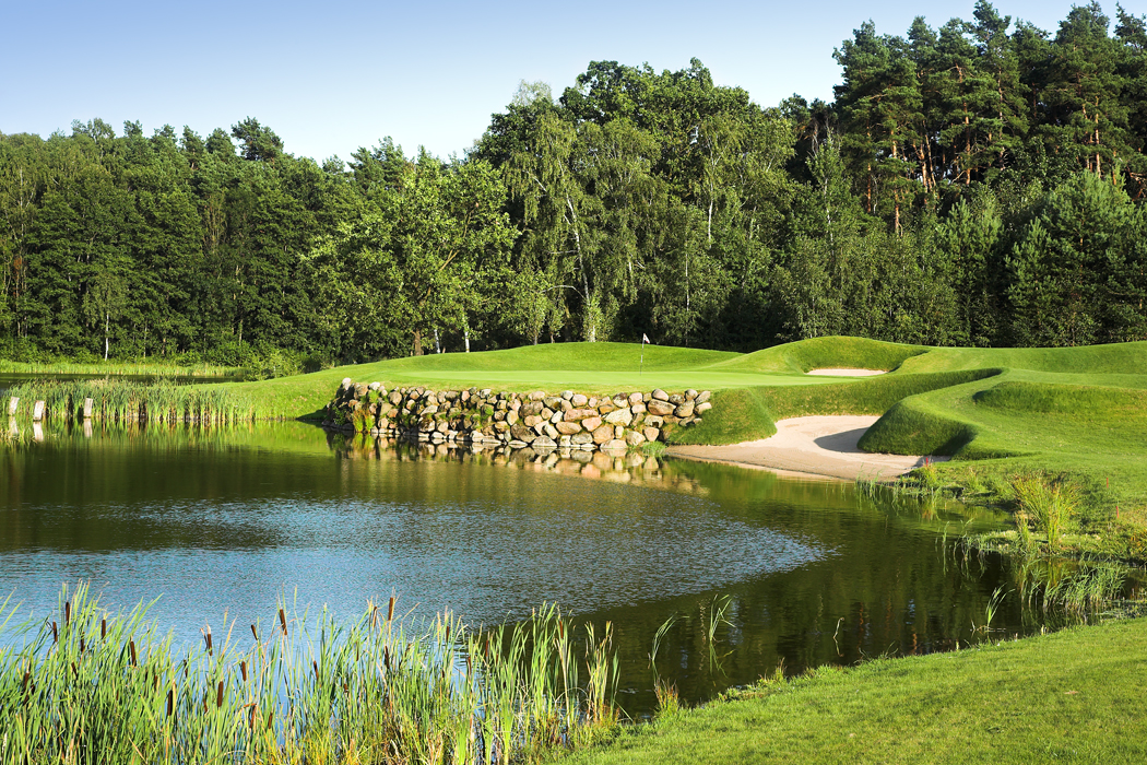 Set in the beautiful West Pomerania region of Poland , Modry Las overlooks two spring-fed lakes and is surrounded by oak, pine and birch forests. Throughout its 7,272 yards, the par-72 course weaves its way through gently undulating countryside that teams with flora and fauna. The remarkable surroundings encouraged Player to describe Modry Las as “a classy golf course carved in a beautiful, natural landscape. It’s just an incredible setting”.