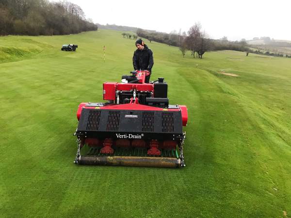 Matt spoke to his local dealer Lister Wilder, who demonstrated a number of power unit and aerator combinations. “With a lot of the competitor machines, the aerator was limited to 4” penetration depths, whereas the Verti-Drain could go down to 6”, making a big difference to root depths, along with creating heave.” They took delivery of the Carrier and Verti-Drain 1513 in combination early last year.