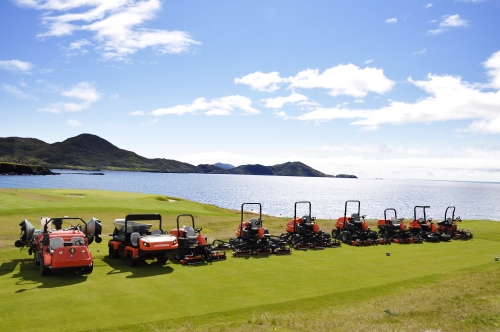 Hogs Head Golf Club, a brand-new course located in County Kerry, Ireland, has chosen equipment from Textron Golf (Jacobsen®, E-Z-GO® and Cushman®) to maintain its surfaces. The course replaces Skellig Bay Golf Club and has been built in the picturesque town of Waterville, with golfers able to enjoy spectacular views of the Irish coast and Atlantic Ocean. Local dealer Broderick Grass Machinery demonstrated and delivered the new machinery.