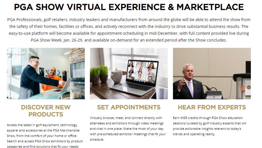 The 68th edition of the PGA Merchandise Show, Jan. 26-29, 2021, transitions to a virtual event to connect the international golf industry online, allowing PGA Professionals, golf buyers, manufacturers and industry leaders to drive forward the business of the game from the safety of their homes, facilities and workplaces during the ongoing global pandemic.