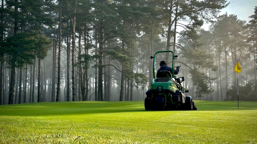 Simpson’s image was chosen by the judging panel as the overall winner with the results of social media voting also taken into account. The stunning shot shows greenkeeper Pete Dunnett mowing the 5th fairway of the Purdis Heath Course as the autumn sun breaks through the morning fog.