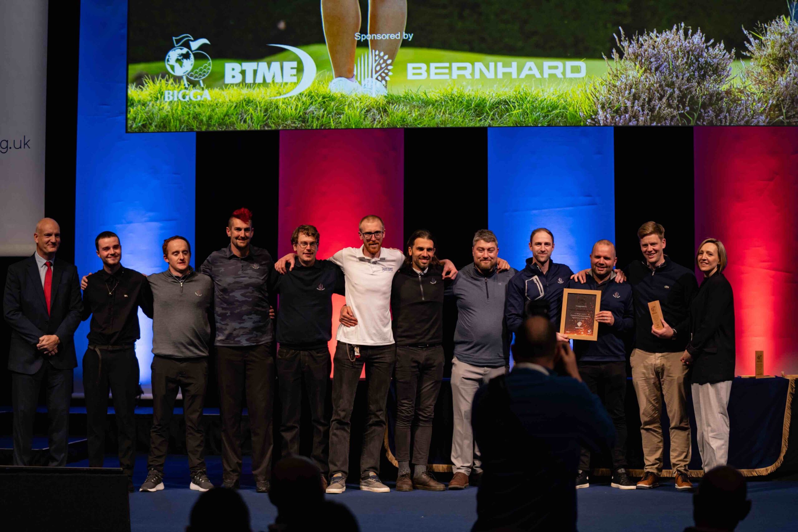 The award – which was handed over by award sponsor Bernhard and Company’s Commercial Director, Angelique Crosnier – was presented to Michael Mann and the entire maintenance team at Walton Heath for the exceptional conditions displayed when hosting the US Open Championship Final Qualifying in May and the 2023 AIG Women’s Open in August.