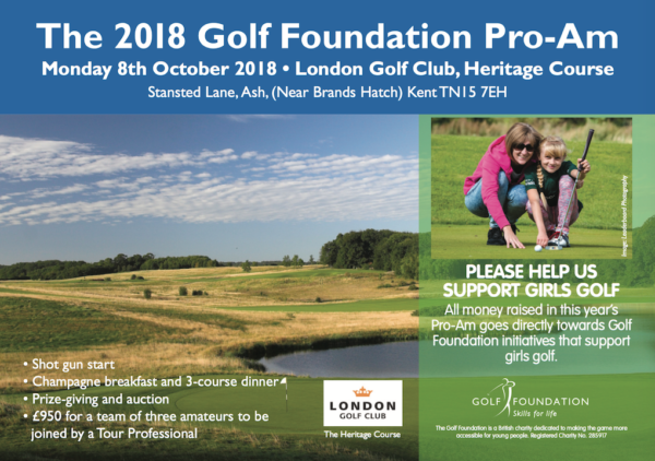 * To book your team or individual places for the Golf Foundation Pro-Am (October 8), call 01992 449830 or email fundraising@golf-foundation.org