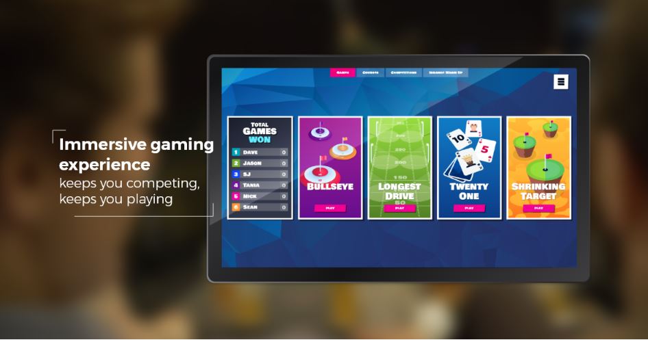 ● Immersive multiplayer games such as Bullseye, Longest Drive, Twenty One and Shrinking Target