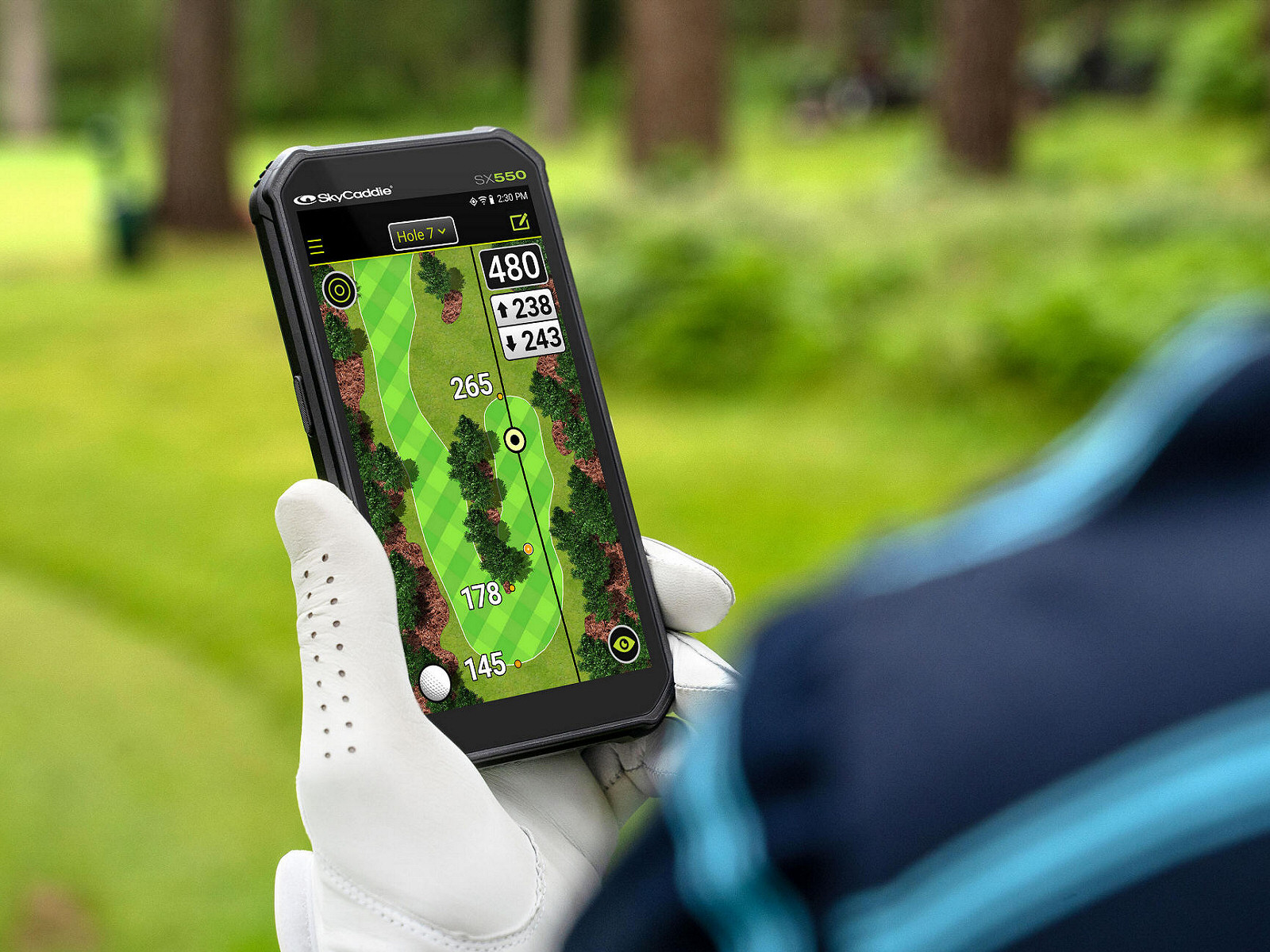 “With a SkyCaddie you get instant yardages to what lies beyond the bunkers, as well as yardages for your next shot into the pin – all without leaving the tee.”