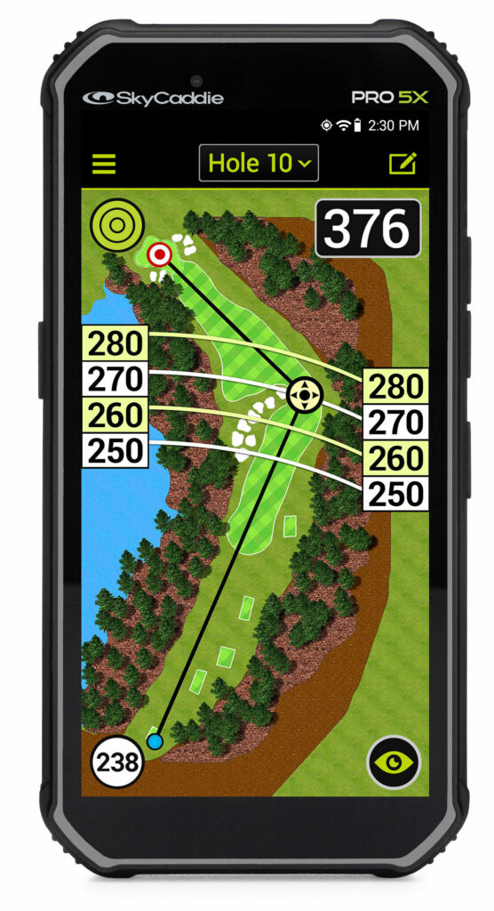 - The super-responsive 5.5” LCD Colour Touch Screen on the PRO 5X is SkyCaddie’s largest and most vivid display with full-colour HD graphics of every hole;