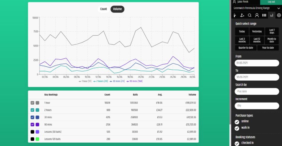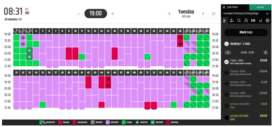Greenwich became the first UK venue to adopt YGB to run their range and contributed personally to the development of several important features like to-the-second availability, the new reporting system, direct dispenser integrations, and rules to restrict teaching bays for pros on different patterns.