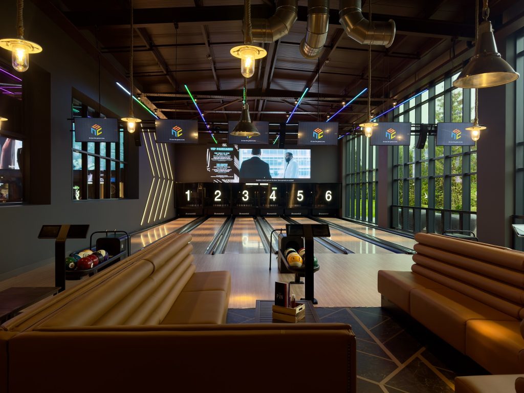 The Pin really is the new centre point of Ramside Hall for golf and sport lovers, with its bar area serving as the perfect spot to unwind after a round, taking in all the sporting action on our multiple large screens. But you don’t have to have played golf to enjoy this; it’s for everyone to visit. Interactive electronic games, such as darts, shuffleboards and pool tables, make it great fun for family and friends, and of course you can grab a bite from an extensive menu. Next to the bar area we have a six-lane bowling alley, so it really is somewhere you can enjoy a night’s entertainment. It has everything!