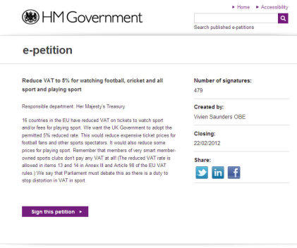 “It would be great if sports fans could publicise this as widely as possible on Twitter and Facebook,” she concluded. The petition will remain open for signature until 22 February 2012.