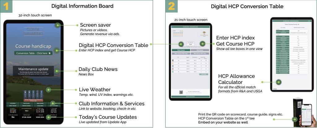 Emirates Golf Club, operated by Dubai Golf, has implemented the new digital system, How Many Strokes, which automatically updates and can also integrate with existing technology systems. The digital handicap conversion board is located at the check-in desk.