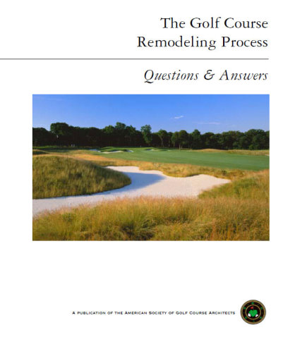 “The Golf Course Remodeling Process – Questions & Answers” brochure can be downloaded at the Publications section of www.asgca.org, or contact the American Society of Golf Course Architects at (262) 786-5960 or info@asgca.org