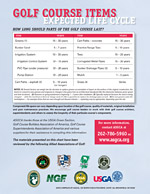 ASGCA has created a free, single-page flyer, “Golf Course Items Expected Life Cycle,” detailing how long specific parts of a golf course should last. Though each course is unique, the guidelines spelled out in the flyer are worth noting. “Master Planning: Questions and Answers,” is an ASGCA brochure that can help golf course managers, superintendents, professionals and owners understand the process of developing a master plan and the importance of assessing the typical life expectancies of golf course components.
