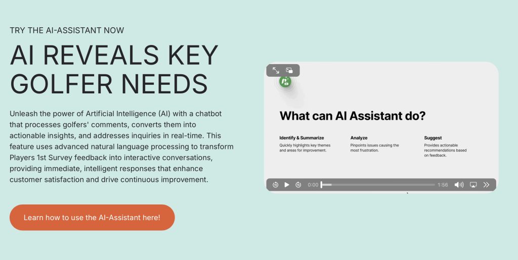 From surveying golfers to actionable insights in seconds, the AI-Assistant simplifies the process of turning raw data into useful insights, saving clubs time and effort while improving decision-making.