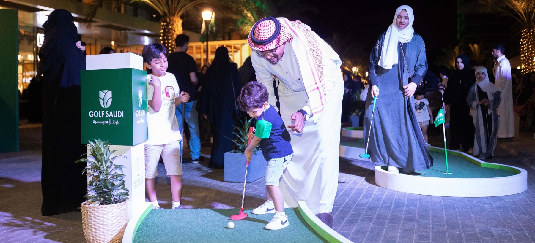 Pictured top: Saudi nationals playing golf for the first time at a Golf Saudi activation in Oud Square, Riyadh