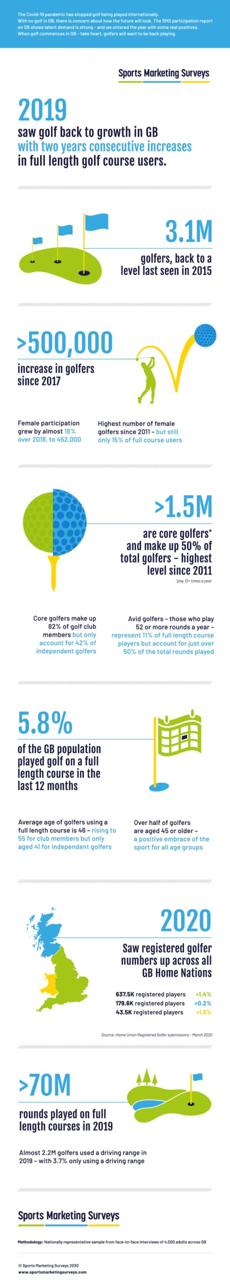 The findings in this infographic are taken from Sports Marketing Surveys’ definitive survey of golf participation in Great Britain in 2019.