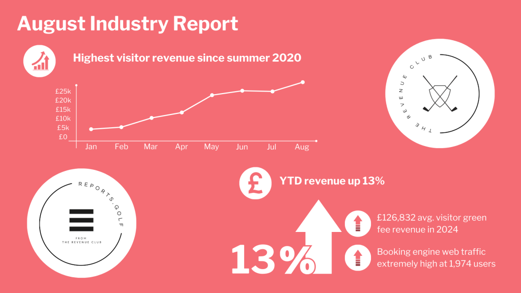 This was comfortably the biggest month of the year in casual green fee revenue, growing by 17% on July to a total of £25,697 at the average golf club that operates with The Revenue Club.
