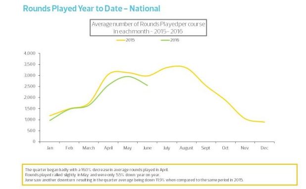 SMS INC. has confirmed that the tough start to the New Year in golf has continued and the average number of rounds played has decreased by 12% in the second quarter 2016, compared to the same period in 2015.