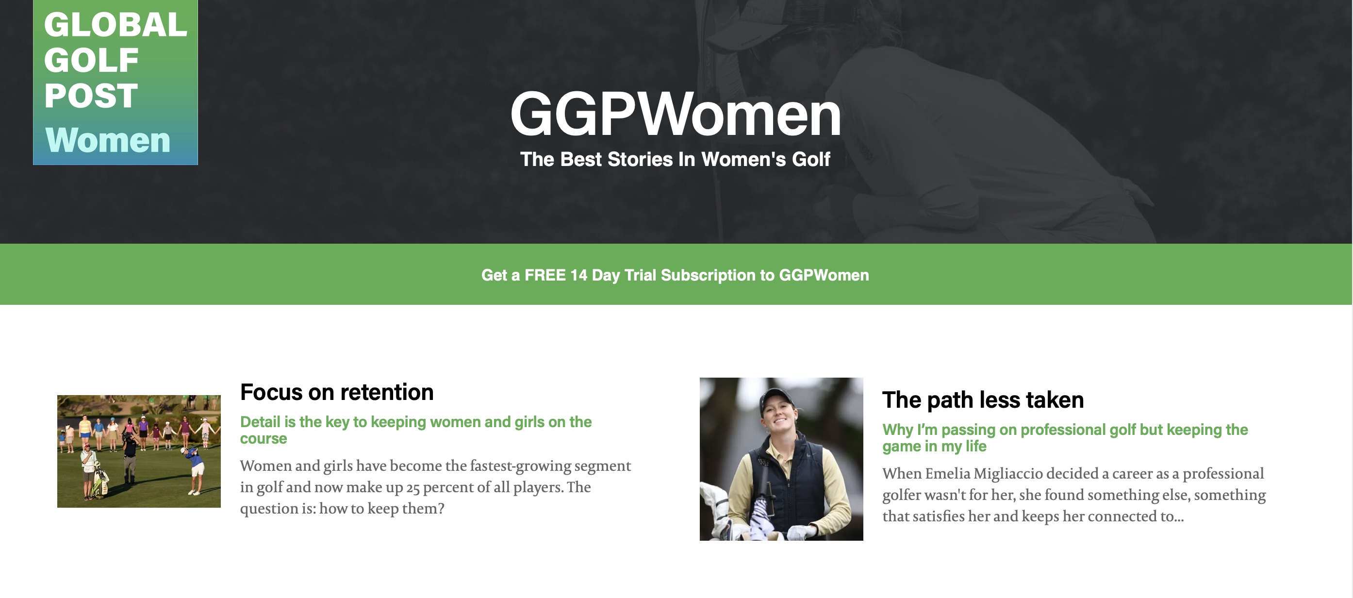 GGPWomen is a subscription service priced at $60 annually or $7 monthly. It joins Global Golf Post’s two other subscription businesses: GGP+, a platform for original, premium quality golf journalism, and GGP/Biz, a golf industry news service. To access complimentary, 14-day trial subscriptions, visit www.ggpwomen.com.