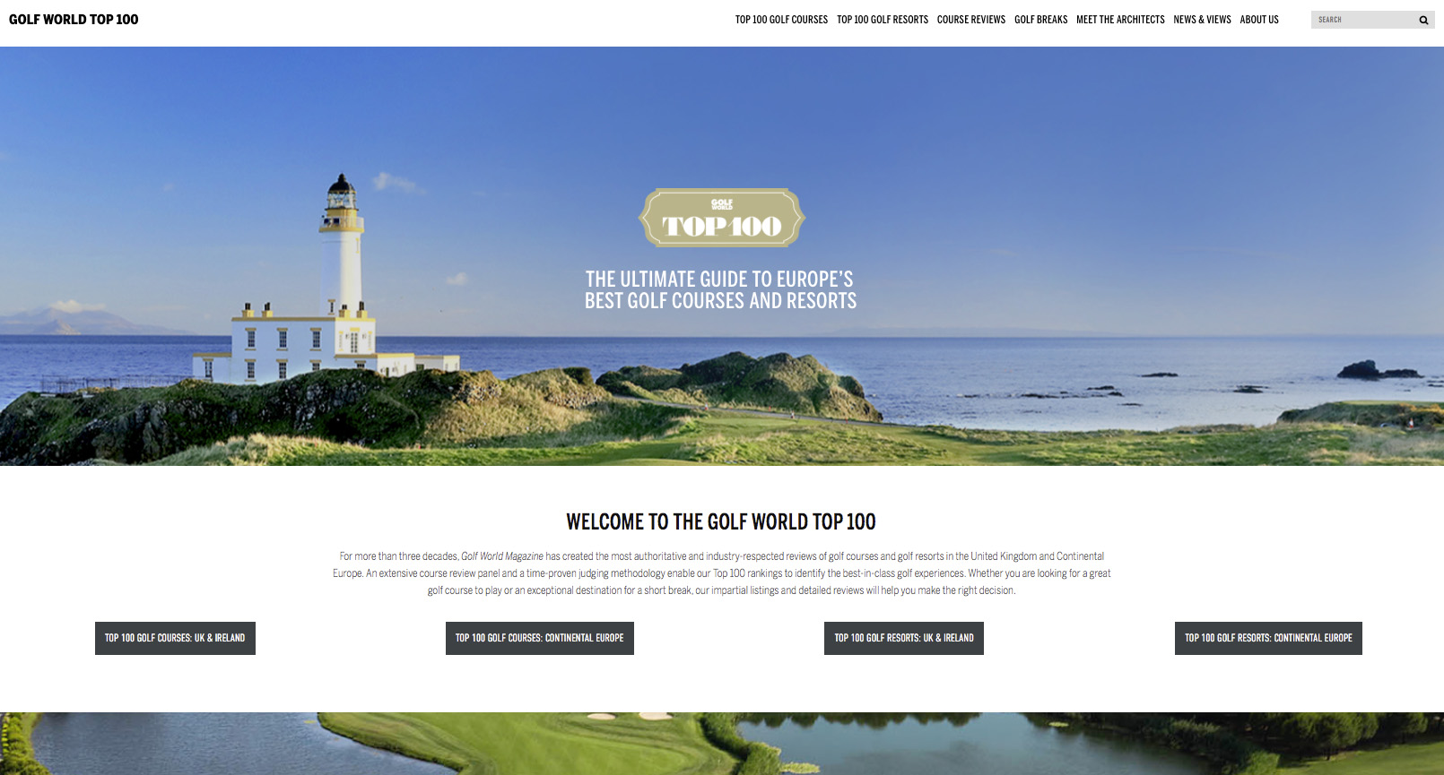 Launched April 1,2019, www.golfworldtop100.com presents all four of Golf World’s main Top 100 rankings – Golf World Top 100 Golf Courses: GB&I; Golf World Top 100 Golf Courses: Continental Europe; Golf World Top 100 Golf Resorts: GB&I; and Golf World Top 100 Golf Resorts: Continental Europe.