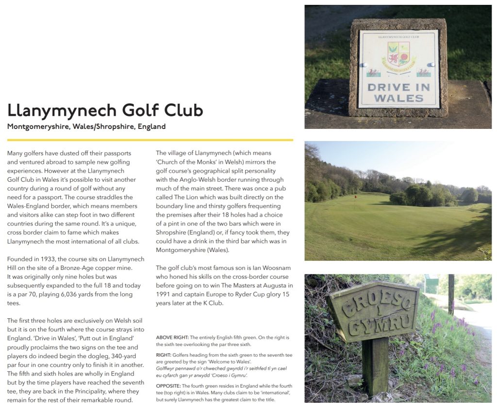 In comparison there are the traditional wind-blown Scottish links, such as The Machrie on the island of Islay, which has the most blind greens on any course, or the remote Isle of Barra where greens are only accessible via a kissing gate. Fancy swapping countries mid-round? You can at the Llanmymynech club in Wales. At the fourth hole golfers tee off in Wales and putt out on the green in England.