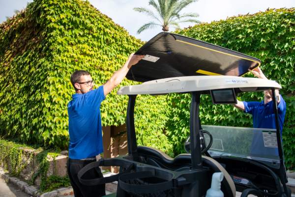 DAS Energy’s innovative panels can be installed on the existing roof of almost any golf buggy on the market without the need for any special tools and the fiberglass-reinforced plastic modules are durable and robust.