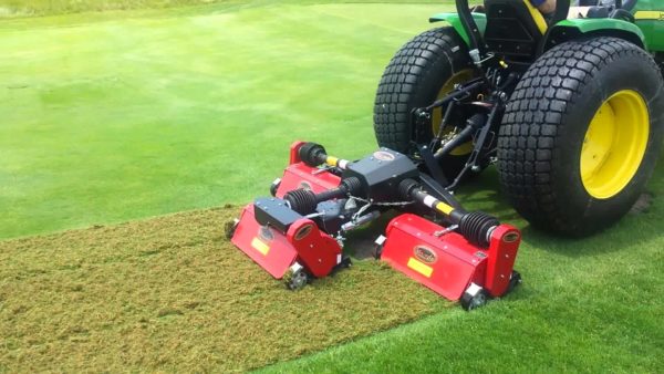 “Depending on what the issues are we can have the Flex-Verticutter remove a lot of organic matter or let the blades just touch the top layer for a light grooming. The heads combine to offer a span of 1.9 m, each working to a depth of 25 mm so it’s what a contractor needs as it covers a lot of ground fast.”