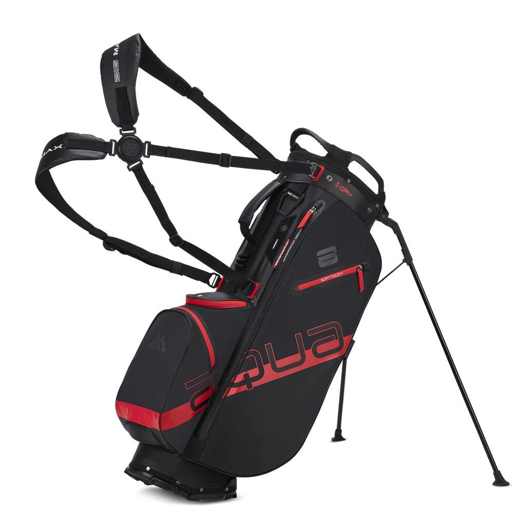 Aqua Eight H: A new stand bag that takes comfort to the extreme. At its core is the ErgoFit Disc – an ergonomically shaped rotating axis that automatically adjusts the straps into the perfect position. Combined with breathable back padding for optimised pressure distribution the Aqua Eight H ensures maximum stability and a natural carrying feel, from the very first step. With a seven way top, five spacious pockets and weighing just 2kg, this is a stand-out standbag. RRP: £199.99. Available in Black/Charcoal, Black/Red, Forest Green/Black/Camo, Navy/White/Red.
