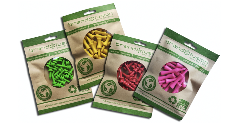 Brand Fusion International, Europe’s leading golf equipment distributor, is expanding its collection of sustainable golf products by introducing 100% biodegradable wooden tees sold in 100% biodegradable packaging under the Brand Fusion brand label.
