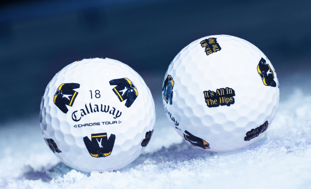 Happy Gilmore, played by Adam Sandler, uses a Callaway Chrome Tour Ball in the Netflix movie, and the Happy Gilmore 2 Limited Edition Balls prominently feature popular visuals and quotes from the film, including the hockey jersey design, hockey sticks, along with iconic lines like ‘just tap it in’ and ‘it’s all in the hips’ to add some fun.