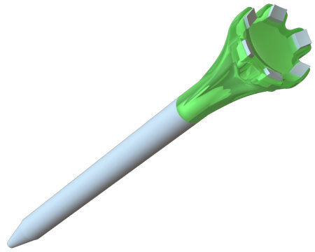 The latest generation of the acclaimed Zarma FLYTee line preferred by top professionals worldwide, the new PRO model is infused with a specially-engineered polymer that makes it nearly indestructible. Like its predecessors, the PRO showcases a six-pronged head and shallow cup to reduce friction at impact, promoting longer and straighter drives. The distinctive head is covered with a soft colored layer to protect the low friction tips and club face. It is available in a 2-¾” option with a green tip and 3-¼” version with a blue tip.