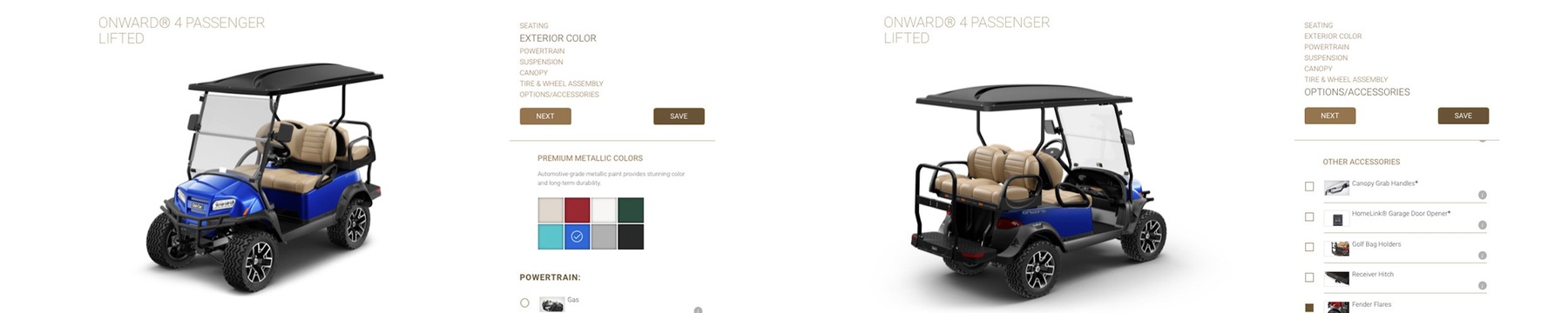 There are currently two product lines available for online configuration, including the all new consumer-targeted personal transportation vehicle range, Club Car Onwards.
